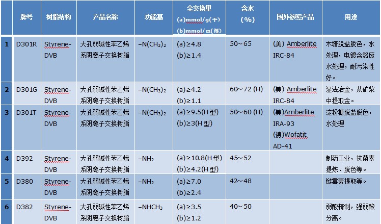 弱堿性陰離子交換樹脂