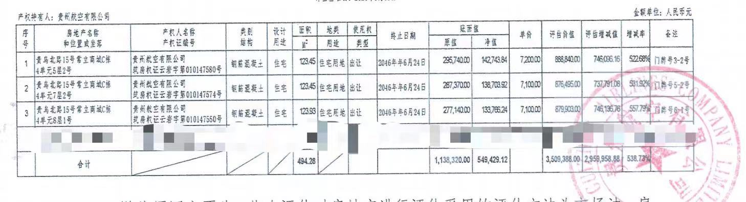 | 資產(chǎn)公告信息 | 資產(chǎn)描述 | 本次標的為貴州航空有限公司持有的貴州省貴陽市貴烏北路15號常立商城三套住宅: 貴州省貴陽市貴烏北路15號常立商城4單元5層2號,建筑面積123.45(㎡),總價888840(元); 貴州省貴陽市貴烏北路15號常立商城4單元7層2號,建筑面積123.45(㎡),總價876495(元); 貴州省貴陽市貴烏北路15號常立商城4單元8層1號,建筑面積123.93(㎡),總價879903(元); | |||||